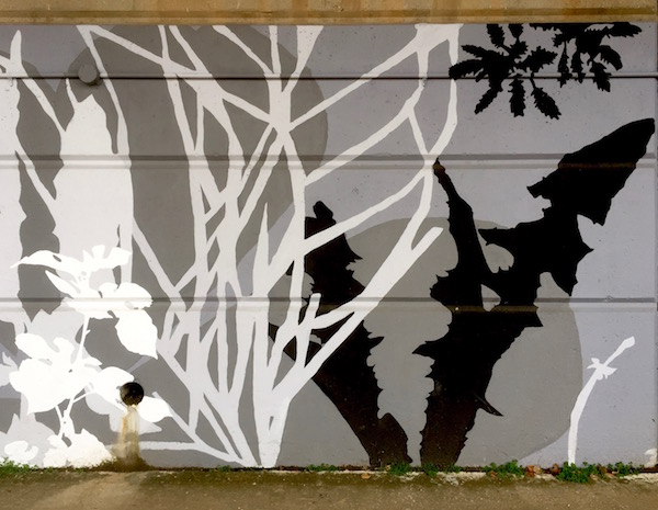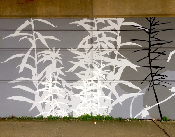 Adjutant mural of Canada thistle under Fort Duquesne Bridge ramp, Pittsburgh, PA