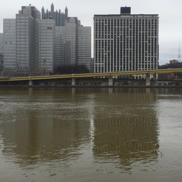If you ever used this section of the riverwalk–the stretch that runs between the northeast corner of Point State Park and the slender Allegheny Riverfront Park that picks up around the Clemente (née Sixth Street) Bridge–you don’t likely remember it for its charms. The passageway was perfectly utile and never felt dangerous (at least in daylight), but walking or bicycling through always seemed like traveling where one wasn’t supposed to–fairly lawless and designed to dock giant barges, not facilitate pedestrian traffic. Corners under the bridge often contained the sleeping bags, tarps, and cardboard boxes of the population that lived down there. Discarded liquor bottles, beer cans, and snack wrappers pointed to late night boozers and early morning fishermen who hung out under its private, protected shelter.