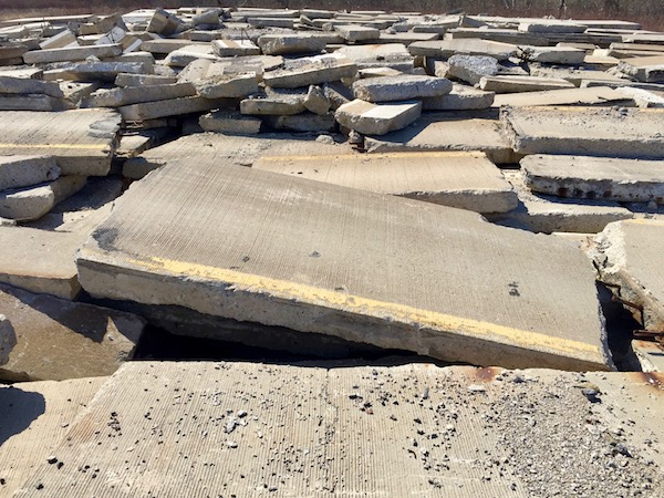 Well, as we found out here, I’ll tell you how: you take an actual stretch of roadway right out of the ground, rack it, stack it, and compact it, and then display it to the very travelers who drove across it in its previous life, viewable right out their passenger-side windows as they whiz by. If that doesn’t get your noodle spinning, well, I don’t know what will.