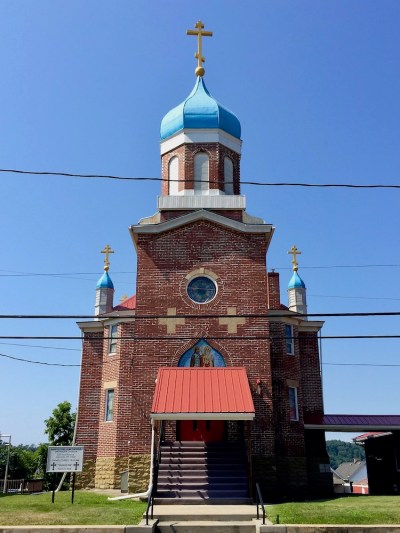 St. Demetrius, the Ukrainian church on Gaskill Avenue, is the smaller and more humble of the pair. It sits in an otherwise unremarkable row of simple wood frame houses just a block off the railroad tracks that bisect Jeannette. It’s also a little ways downhill, so you won’t spot the gleaming silver-colored ornament until you’re relatively close.