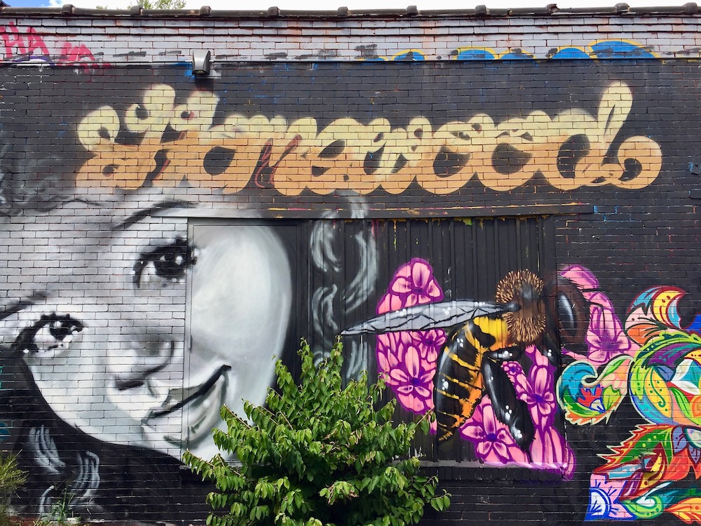 mural of woman with flowers in her hair for the Deutschtown neighborhood of Pittsburgh