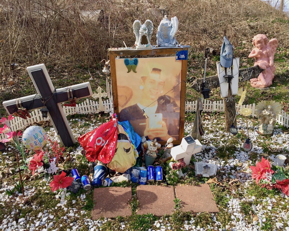 Chance Borgese who lost control of his car and crashed into a guardrail on Rt. 88 near Monongahela in 2020. Borgese has a large wooden cross adorned with a wreath of flowers, a photograph, and decorative pots left for him on the site. He’s not the only one with a roadside cross.