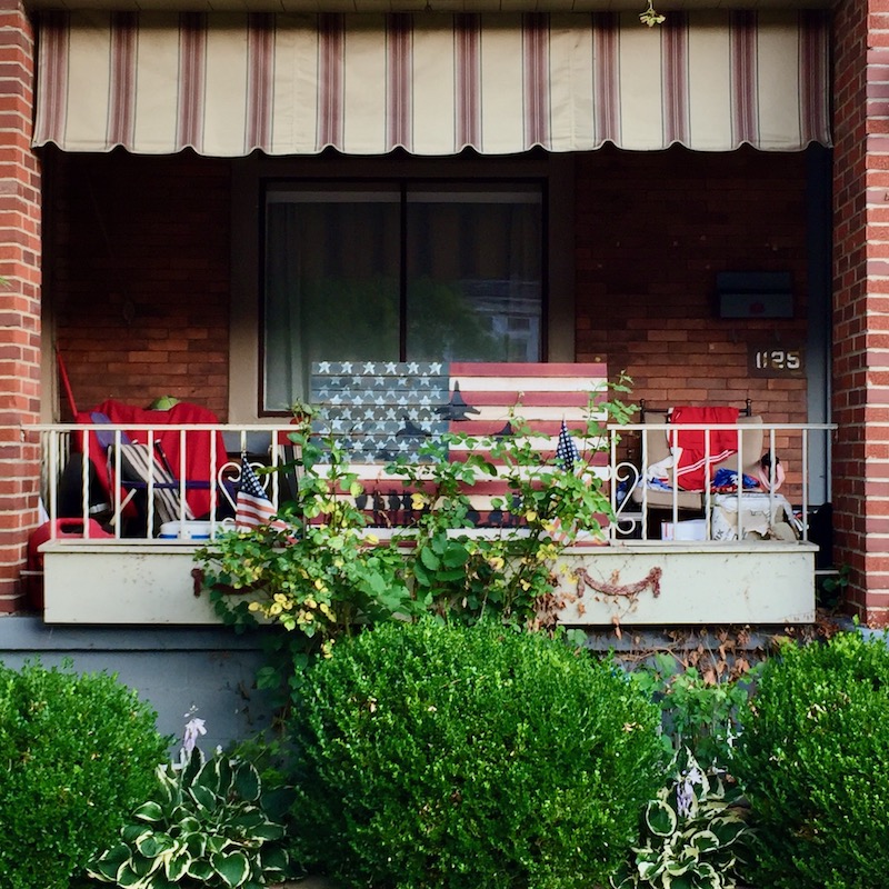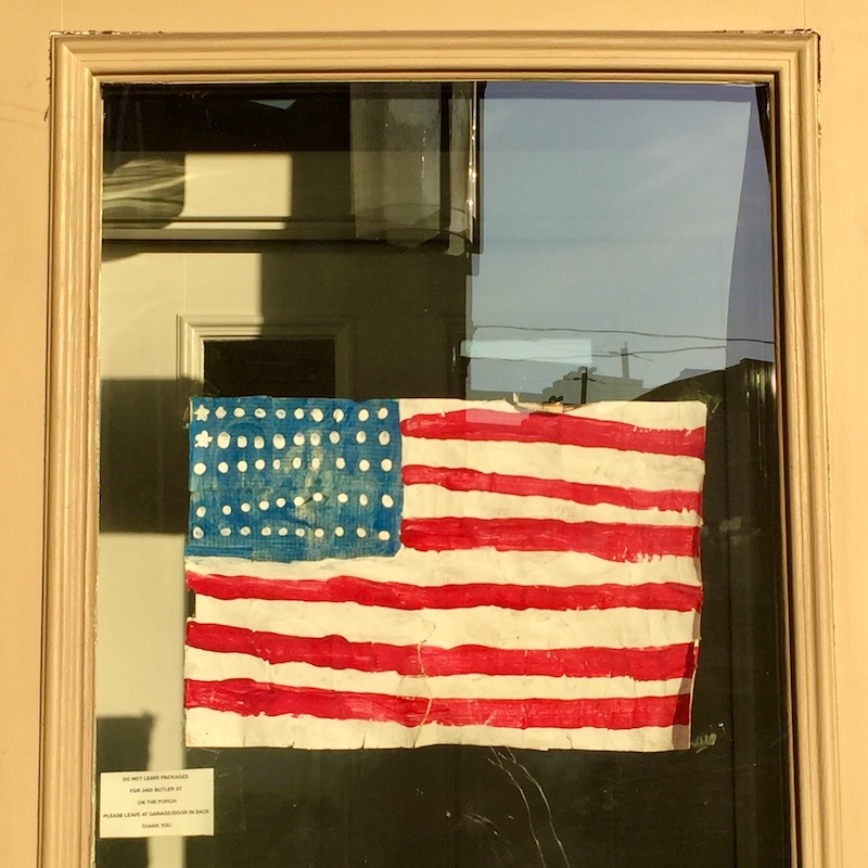 Rest assured, not every new flag in the Orbit‘s cross-county travels involved a deceased artist’s unfinished masterpiece or the shroud of mental fog. We came across plenty of well-lit, full sun, American flag-like things decorating private clubs and garden walks, identifying street addresses and hung from picture windows. But on a year when blue is the prevailing mood, red-and-white just doesn’t feel quite right.