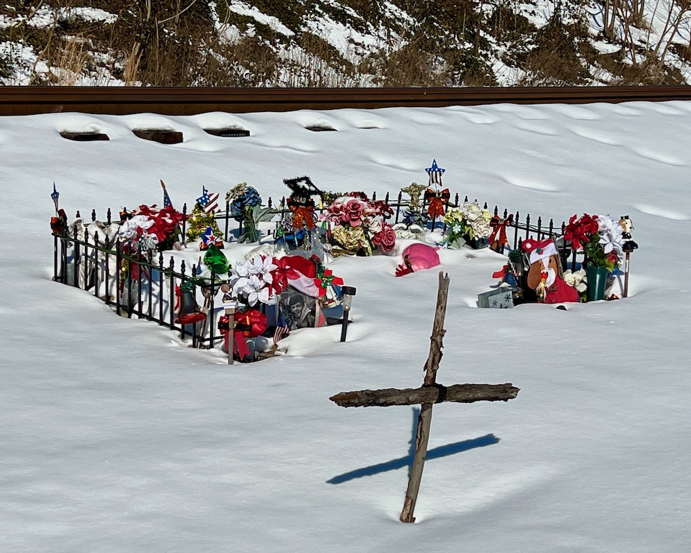 The flag’s not dead! … but it probably had a rough year like the rest of us. Retired flag box, St. Nicholas Cemetery, Reserve Twp.
