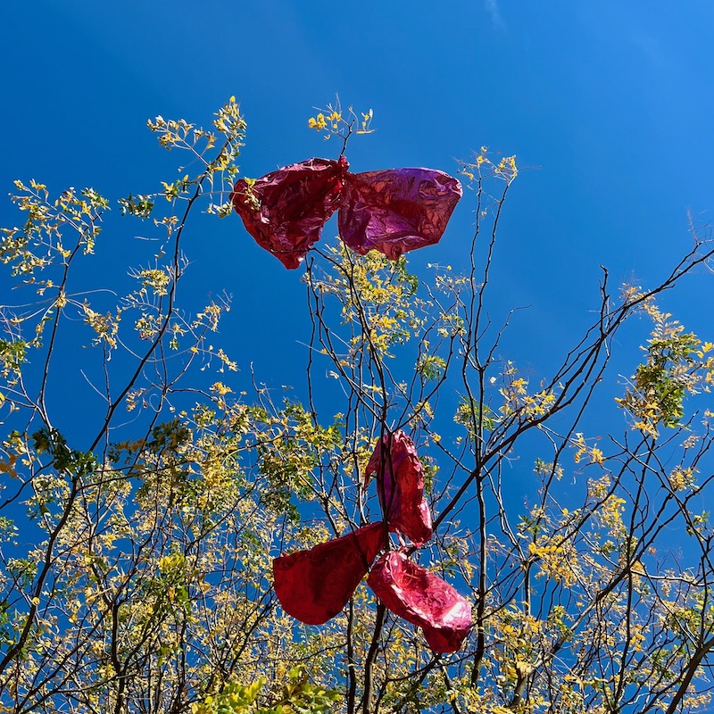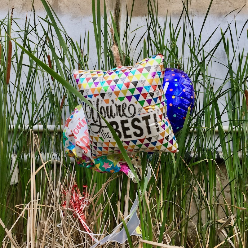 Someone (Lori? Linda? Lenny?) was celebrated in the near past—a birthday, maybe? perhaps an engagement, job promotion, or baby shower—and her or his friends ordered up a golden capital L balloon to commemorate the occasion. The party may have been terrific—drinks all around, goofy stories from the past, novelty gifts from friends that embarrassed family members—but that’s all over now. The big helium-filled letter balloon floated out of a car window or the venue’s service entrance, had some dying adventures in the low atmosphere, and landed here, in the muck under a bridge on the South Side.