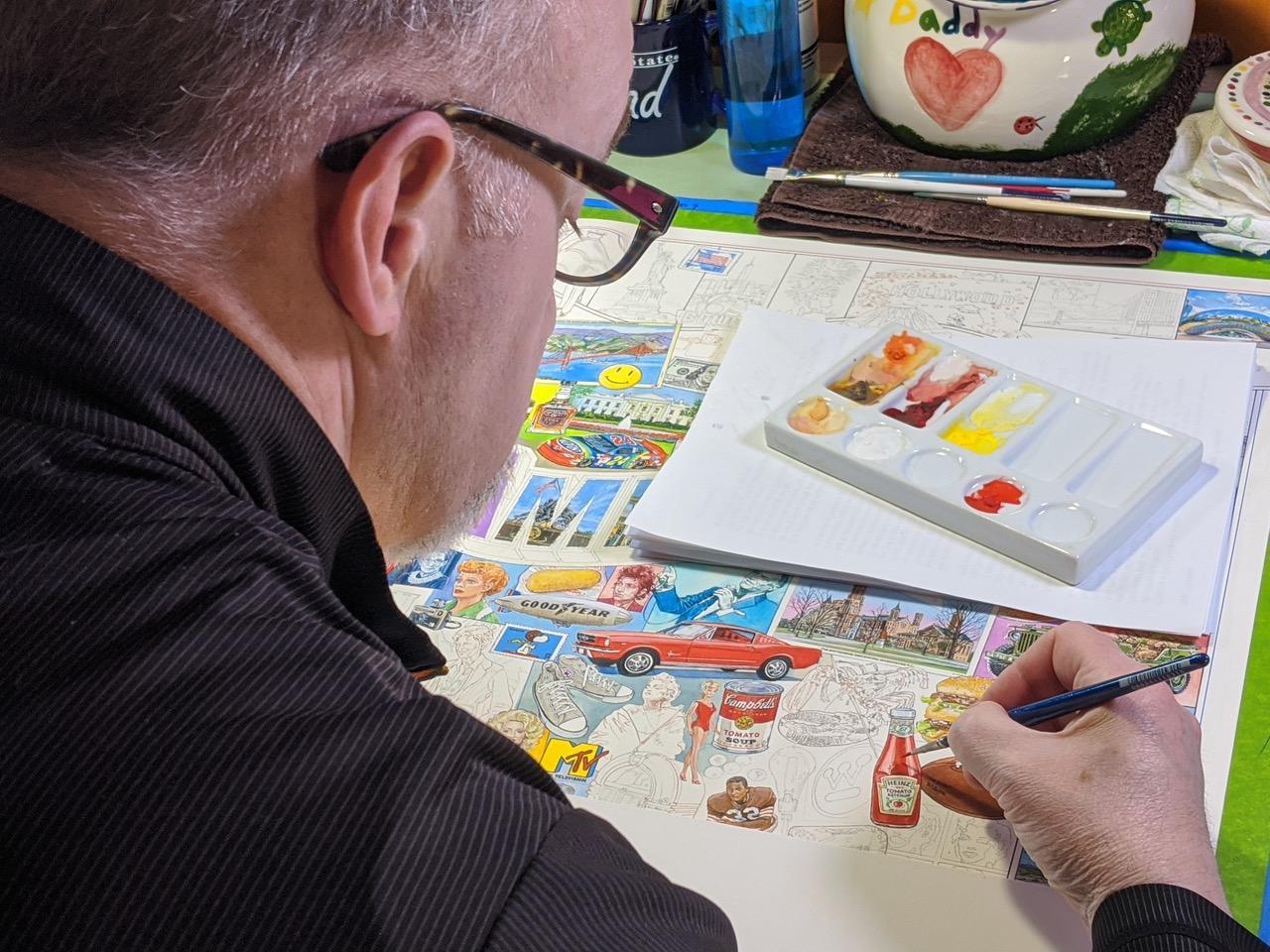 Jim Mellett at his home studio working on his next puzzle, “Iconic America”