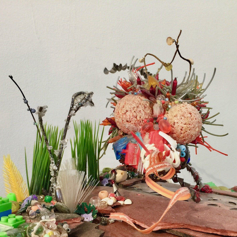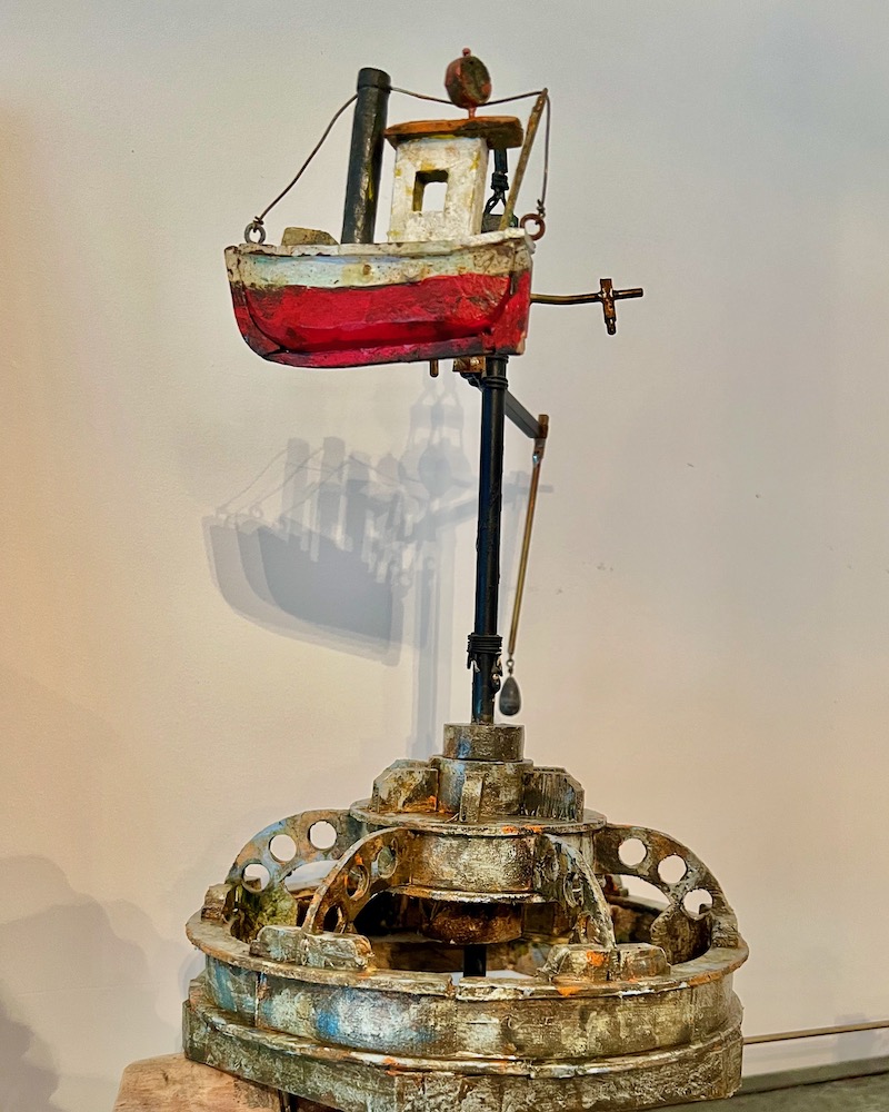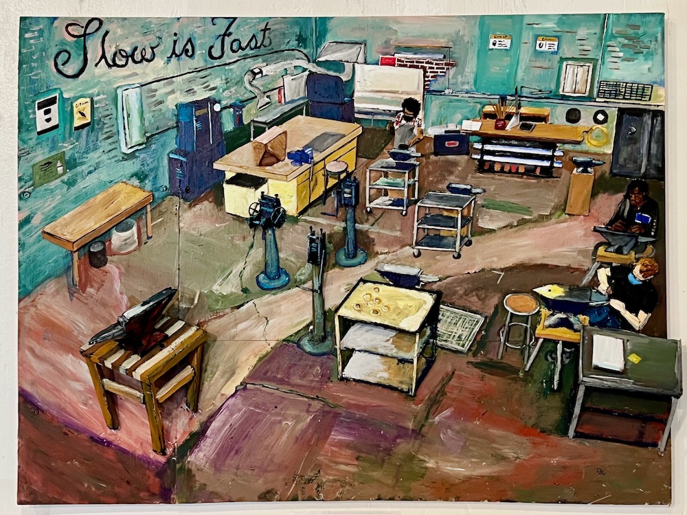 Van Patter works in a medium we might call pictorial painted sculpture. You could also turn that around and say they’re paintings on wood constructions with sculptural elements. Van Patter just calls them paintings.
