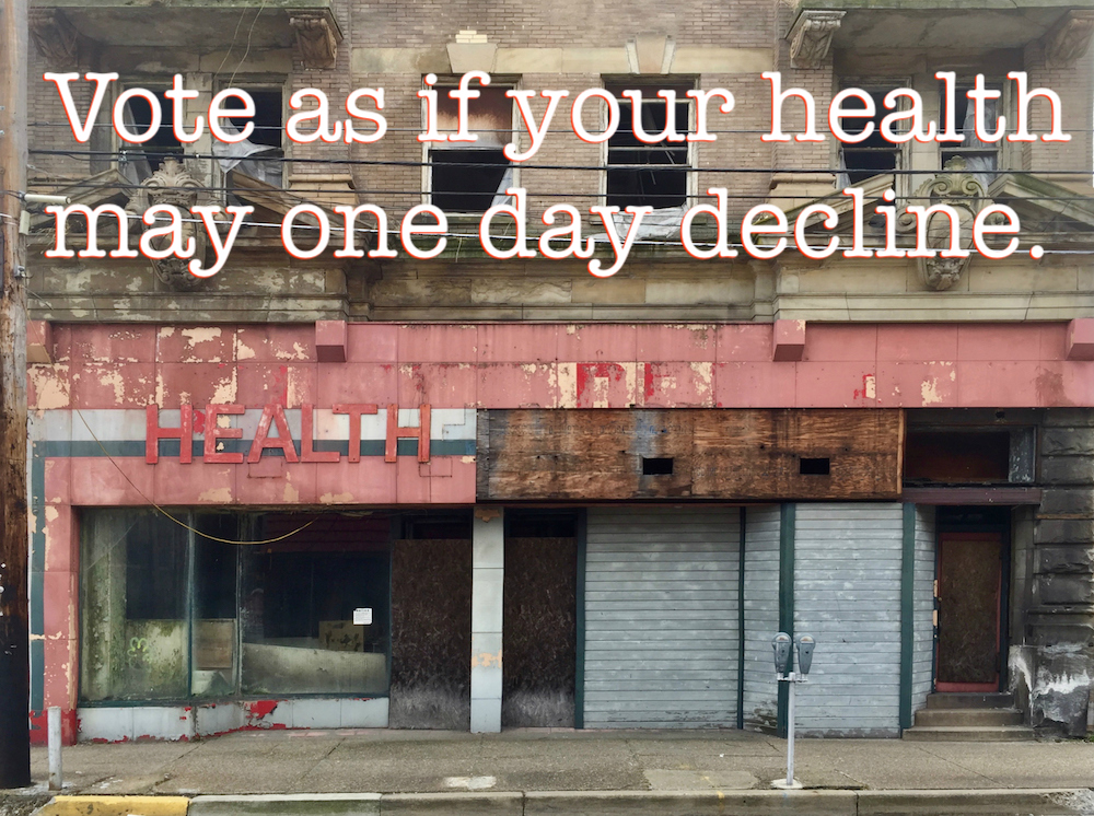“We need something to spark a conversation.” The “HEALTH” building, downtown Monessen.