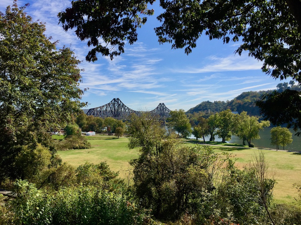 Don’t be too quick to get across the river! An easy trundle through the longer residential streets (Washington, Indiana, and Atlantic Aves.) is well worth the poke-see, as are the dramatic river views from Monaca’s pair of waterfront parklets.