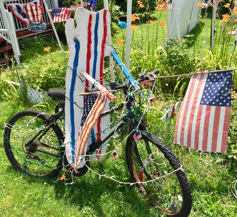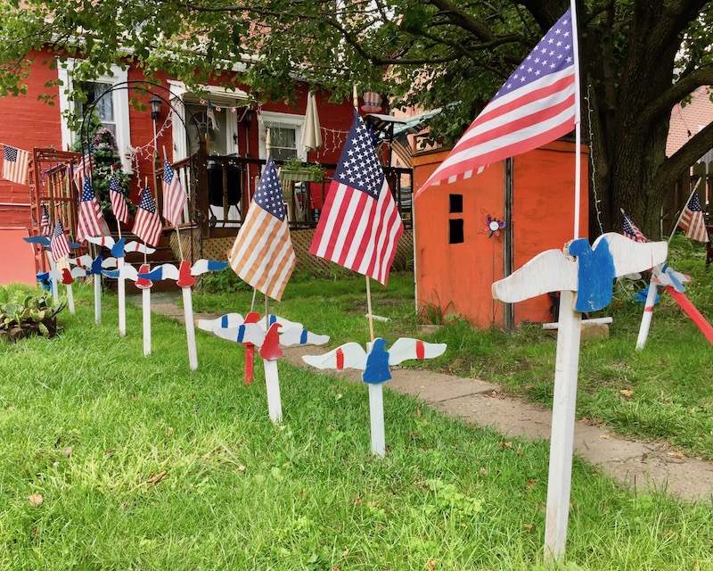 At the far end, you’ll come up close to Thunberg Acres (our name). Orbit fans know this as the 3rd Street home of Gary Thunberg and his always-in-rotation holiday displays. [See photo above; we’ve reported on Gary’s homemade Halloween and Independence Day displays in years past.] Whatever the time of year, see what Thunberg Acres has in the queue of full-yard displays and please sign Gary’s guest book in the front box–he’s got a collection that goes back 20 years and would love for you to add to it.