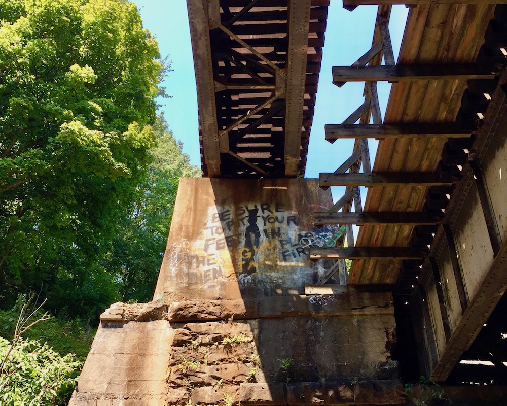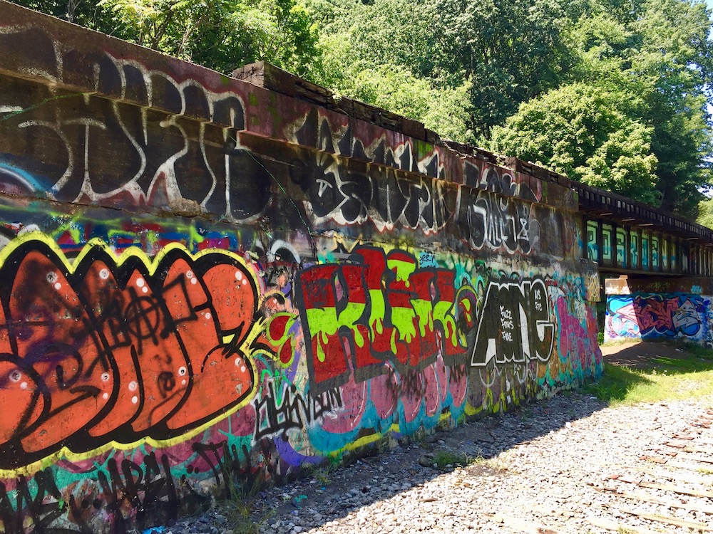 Seldom seen but oft-graffiti’d. The “secret place” graffiti trestle at Seldom Seen Greenway, Beechview.