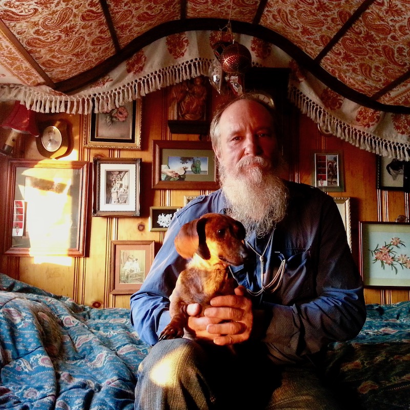 “You don’t mix cabbage with peas.” Simeon with one of his “doggies” in his bedroom/workroom.