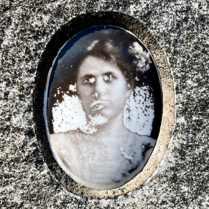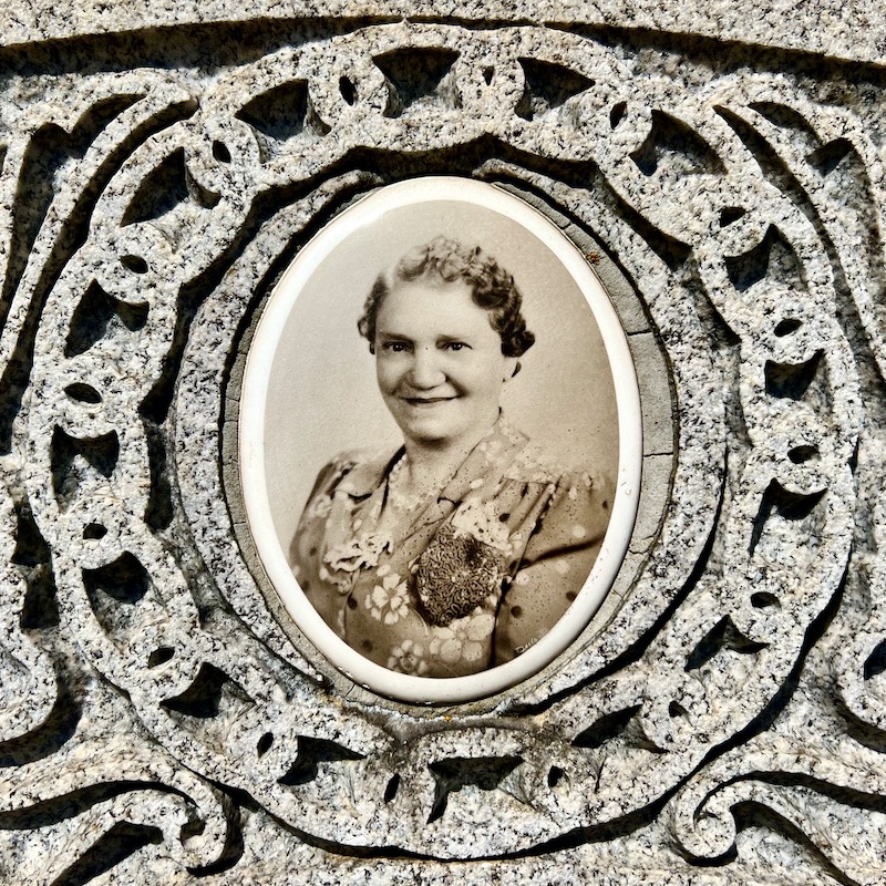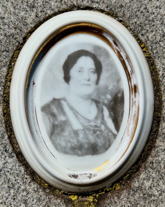 That something came in the form of a small black-and-white photograph, cast onto an oval-shaped ceramic disc and inset directly into one of the tower-like headstones. The posed portrait was of a middle-aged woman, “Mother” Antonija Komlenić, Victorian in both high-necked formal dress and dour, no-fun-allowed expression.