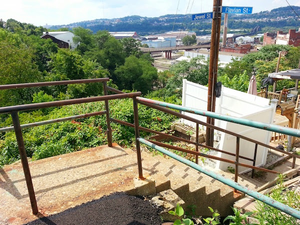 And so it was this past weekend. We seized the opportunity to embark on an up-and-down* bicycle-based reconnaissance of the Greenfield and Hazelwood neighborhoods which led us to a happenstance trip up Tullymet Street, a most excellent set of city steps heretofore unexplored by this blogger.