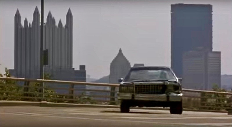 Of course The Polish Hill Strangler would take P.J. McArdle Roadway up to very-accessible Grandview Avenue in his escape route! Mount Washington’s cobblestone streets, hairpin turns, and limited egress points are exactly what any clever criminal who “drive’s like a cop” would opt for. Regardless of the plot logic of this particular route, it leaves us with some great views of the Pittsburgh skyline…and that’s probably what Rowdy Herrington was really after.