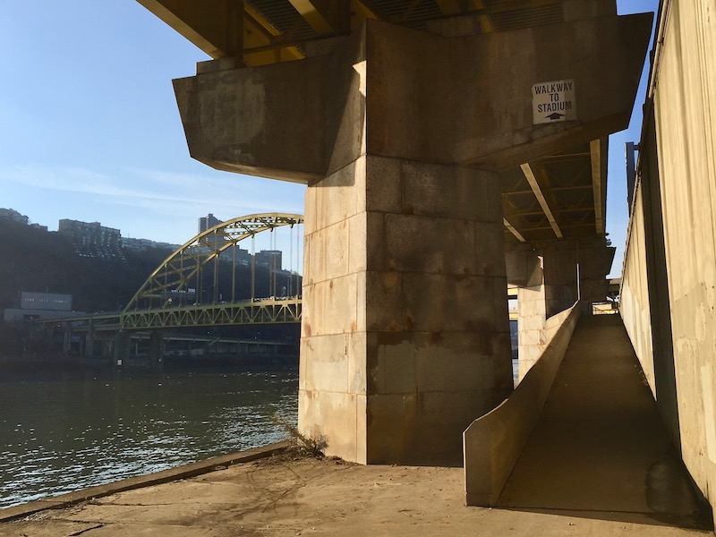 Fire or not, Steelers fans will remember this south end of the tunnel as the dangerous intersection where Ben “Why would I wear a helmet? I’m not playing football.” Roethlisberger almost ended both his life and career in a motorcycle accident in 2006. Like all the principal characters in Striking Distance (but not all the extra roles!) he made it out alive.