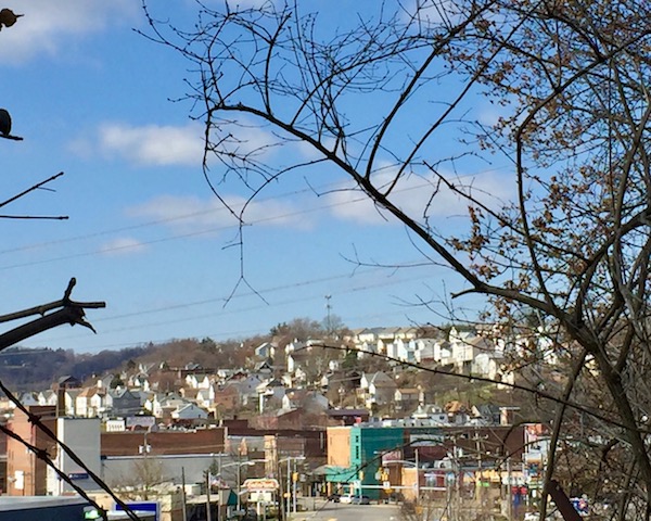 The little boomerang-shaped neighborhood sits at the far western edge of the city, bounded by the Ohio River, Chartiers Creek, and a set of train tracks. There is no welcome sign. If you don’t live in the area, you’ve still probably whizzed by on West Carson Street/Rt. 51 as it heads out toward McKees Rocks, Neville Island, Coraopolis, and points west. In fact, from several Esplen dead-end streets there are some quite fine, elevated views across the creek to Chartiers Ave., downtown McKees Rocks’ main drag[1].