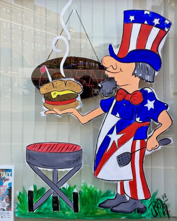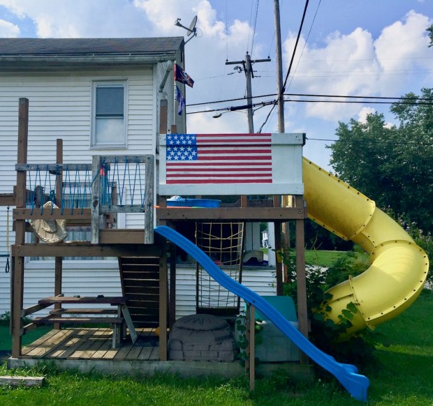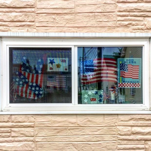 “We all know that Pittsburgh is about many things, but little separates us from other towns like our abundance of bridges and pierogies,” says Paul Schifino about his pierogie-bridge flag. “Is it a bridge? Is it a pierogie? The answer is yes. My goal was to create something graphic with a simple message: We Are Pittsburgh.”