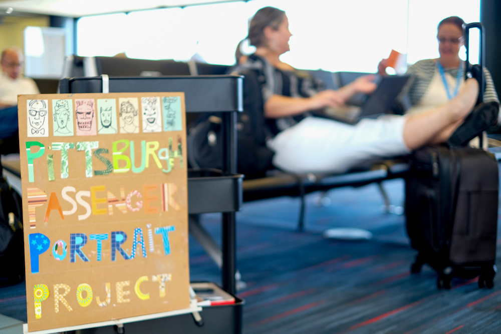 From the late summer through mid-fall, Pittsburgh artist Kirsten Ervin spent every Thursday at the airport. She wasn’t flying anywhere, nor was she there to drop-off or pick-up an air traveler. Ervin’s reason to make the trip each week was to meet strangers passing through the airway’s concourses. Those with an open mind and a few minutes to spare would have an original artwork created of them, right there on-the-spot.