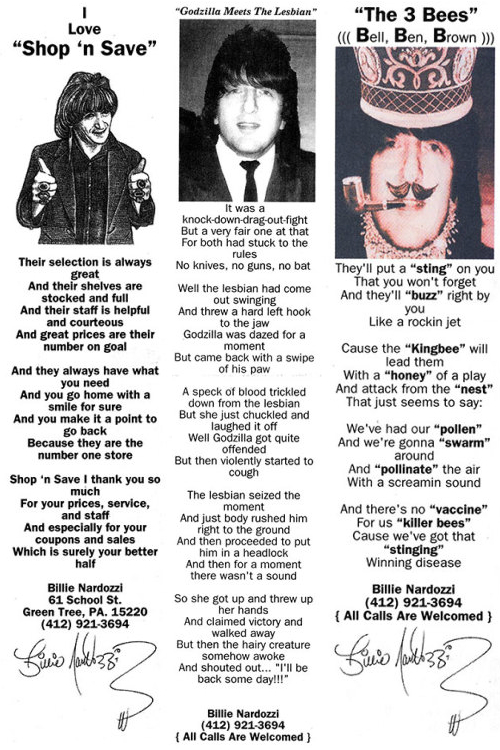 Brett Yasko is a graphic designer and Billie Nardozzi fan who has archived the poet’s contributions to the Post-Gazette almost since the beginning*. He has a similar appreciation for the unorthodox approach to publishing: