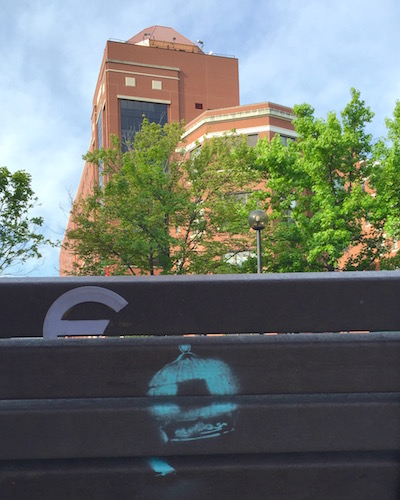 A third opinion holds that we’ve got deeper symbolism here–something very specifically fish-related. All three of the Centre Ave. finds are within rock-tossing distance of the East Liberty Whole Foods; “orange fish” was spotted adjacent to the Hokkaido Seafood Buffet restaurant. It doesn’t take Hercule Poirot to connect these particular dots. Whether the Dangler might be addressing mercury in the food chain or the Pacific Ocean’s plastic vortex is unclear, but lines can certainly be drawn.