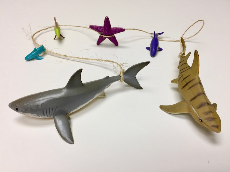 It started, as these things do, with just a single incident. Back in the early fall, out on an afternoon constitutional, the crew came across a curious sight. Tangled in the mid-level branches of a street tree on Centre Avenue was a six-inch plastic tiger shark, hanging by a length of rough twine tied around her tail fin. Following the string led to a purple dolphin, then a starfish, and so forth. Six miniature sea creatures in all, very much out of water, and awkwardly tossed into the leafy undergrowth just above head level.