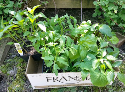 We use fresh vegetables. Know that a vegetable pizza will produce a lot of liquid. Fair enough—this from another of Shelly Pie’s FAQs. Neither our tomato & spinach pizza (below) nor the half green pepper (at top)—which must have contained an entire large pepper—had any noticeable storm runoff, but it must be true on a really heavy veggie pie or the notes wouldn’t have made it to the menu.