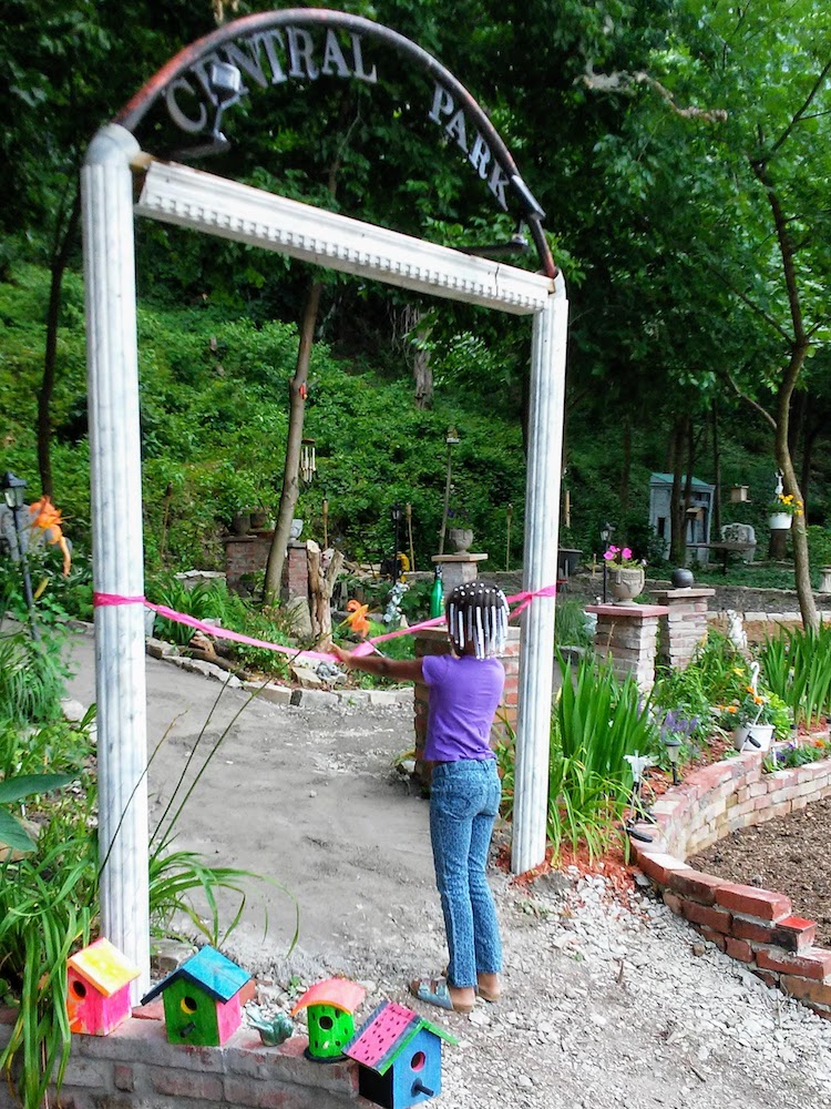 “This is an illegal art exhibit,” says Joseph Szabo about the vision-turned-reality he’s worked on for the last eight or ten years. The ambitious project converted overgrown vacant land across the street from his home into the magical pocket park it has become. “Central Park in New York City is my favorite place in the world. I created this as an homage to it.”