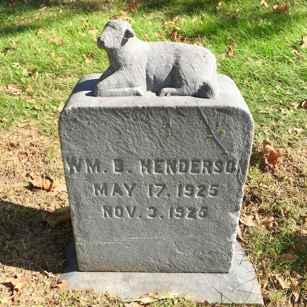 Two of the specimens (Kirk and Klein, photos below) seem to be the same general make and model, but otherwise each gravestone is unique. That’s not to say the lambs don’t look alike–they do–but there’s enough variance here to suggest these weren’t simply off-the-shelf lamb-on-a-box markers.