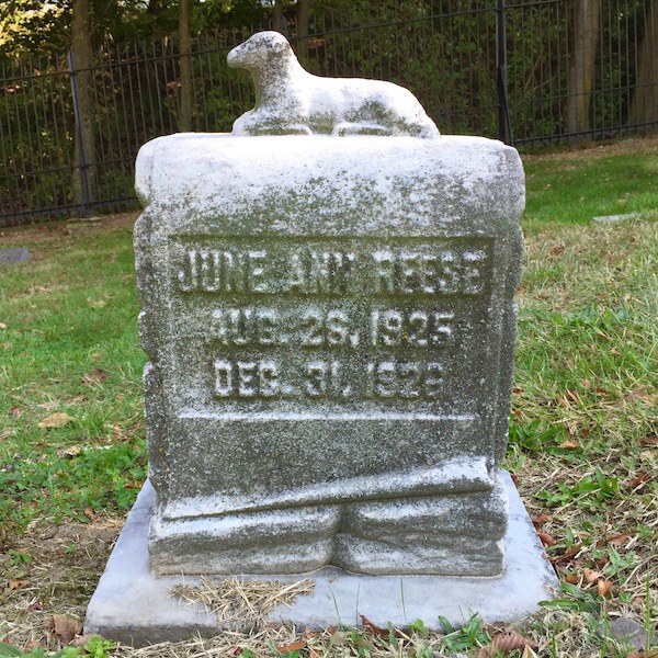 Jennie Benford, our Concierge to the Dead, says “The lambs were very popular but almost exclusively for children’s markers.” The Internet backs her up on this claim, as does the anecdotal evidence of the dates we can see on the (still-legible) stones here. The deceased were all between months and just a few years old when they arrived at Union Dale and given the concentration in this one small area, we have to wonder if Section b was earmarked as plot for children.